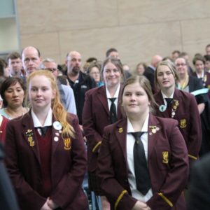 Over 500 students from Year 7 to 10, plus staff from all parts of the College and a group of Military Mumma personal trainers, combined in the Savio Centre for what must be Tasmania's biggest school indoor Boot Camp session ever today. Music, action, a series of tough exercise routines and a barrage of verbal encouragement - and commands - from star fitness gurus Kirri and Troy from Military Mumma had the gym quaking.